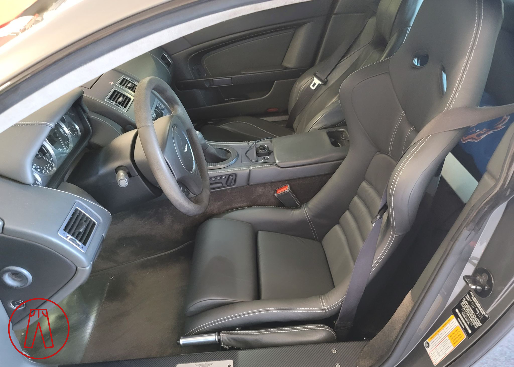 The direction I have for this car is to make it a track car that’s perfectly fine on the streets. Think, street-legal GT4 race car. I’d originally planned to put a high-revving race engine in this car and focus on response and precision, while supercharging my red 2007 V8 Vantage and adding luxury features to that car. All the plans converged into my grey V8 Vantage when I sold my red one - I supercharged a race engine and built the car for precision and response while also adding luxury features… With that came merging the idea of a racing seat with luxury appointments.