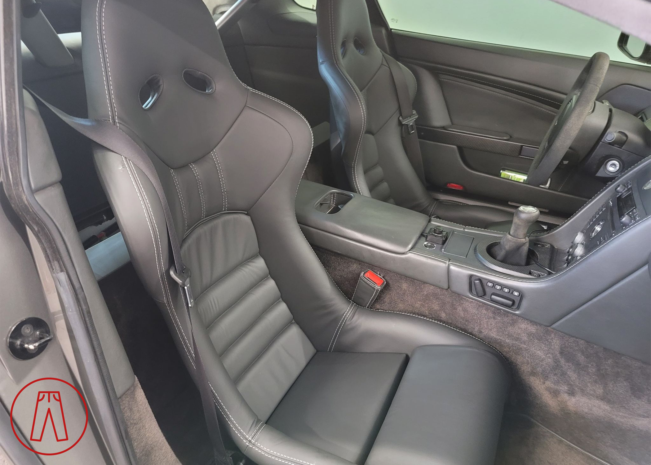 Low hip bolsters were what immediately drew me to these seats as they seemed like they’d allow easy access to the factory seat belt receiver. The low bolsters would also make ingress and egress much easier, especially with the fairly-tight cabin of the V8 Vantage. After installing the seats, both assumptions proved to be absolutely true and made me completely certain that I’d made the right choice.