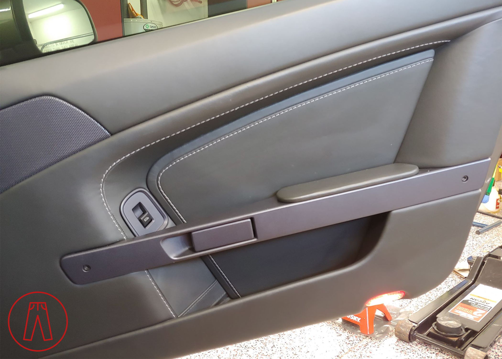 Removing the door bars in an Aston Martin is a pretty easy job except for a tricky little clasp inside them. There are a few reasons to remove the door bars: it’s the first step for removing the door panels, you may need to refinish them to repair chips from the seat belt buckles, or you may want to upgrade them with a set of carbon fiber ones, or… all of the above.