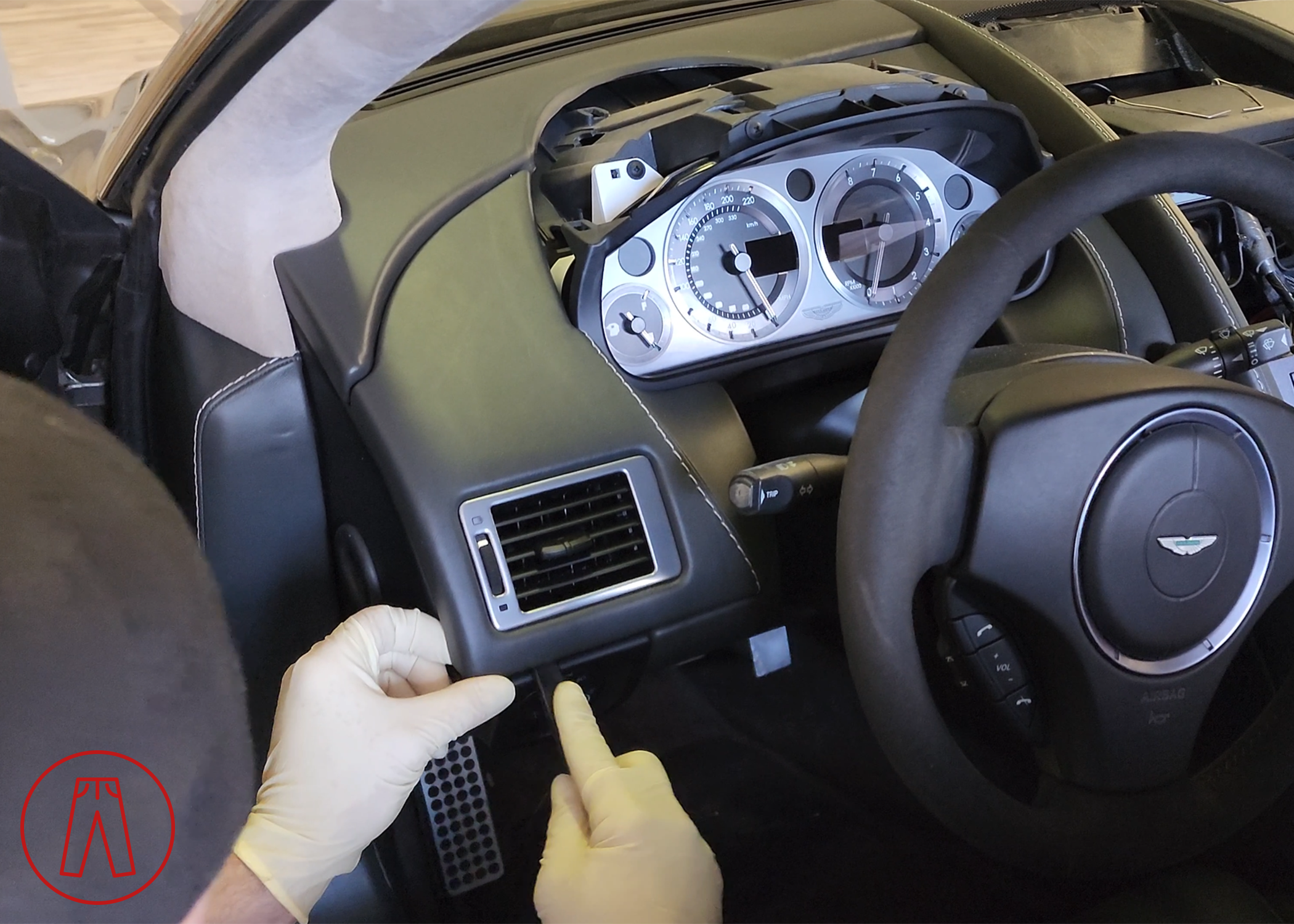 Repeat the process for the trim pillar on the other side of the cabin, but don’t actually remove the trim panel from the car (just loosen the bolts).