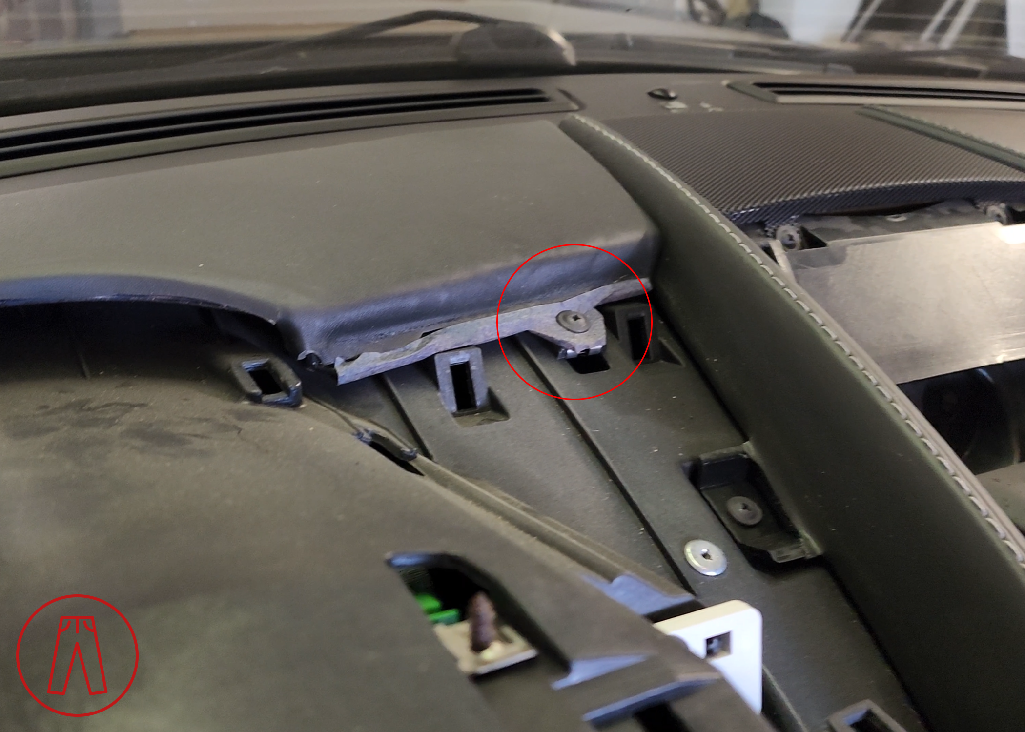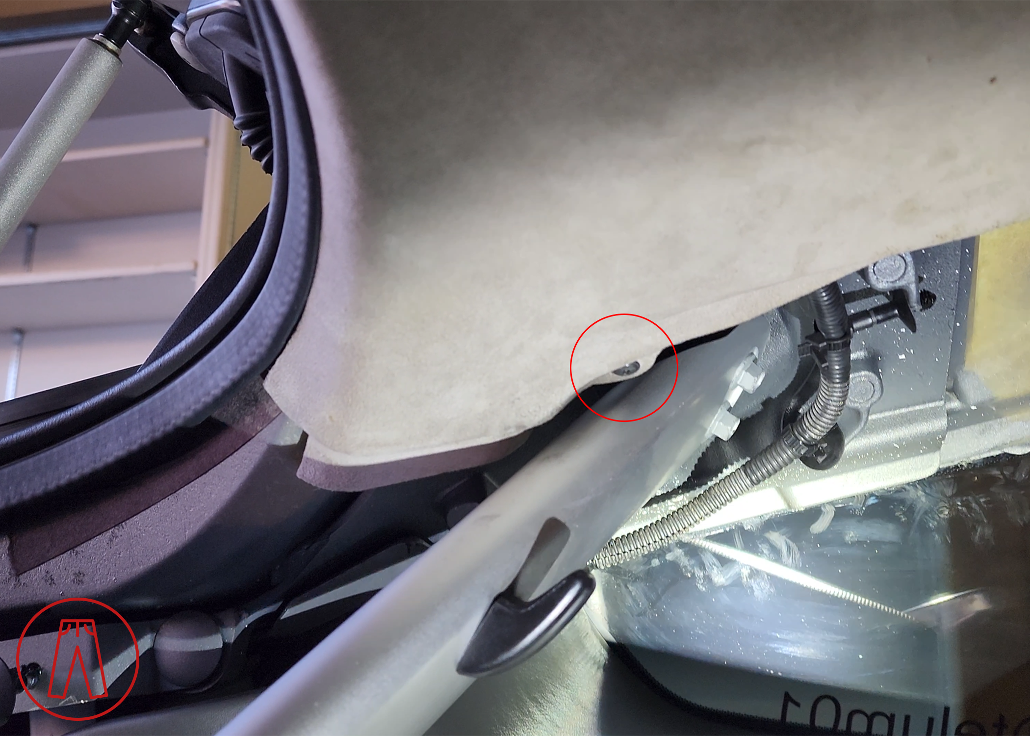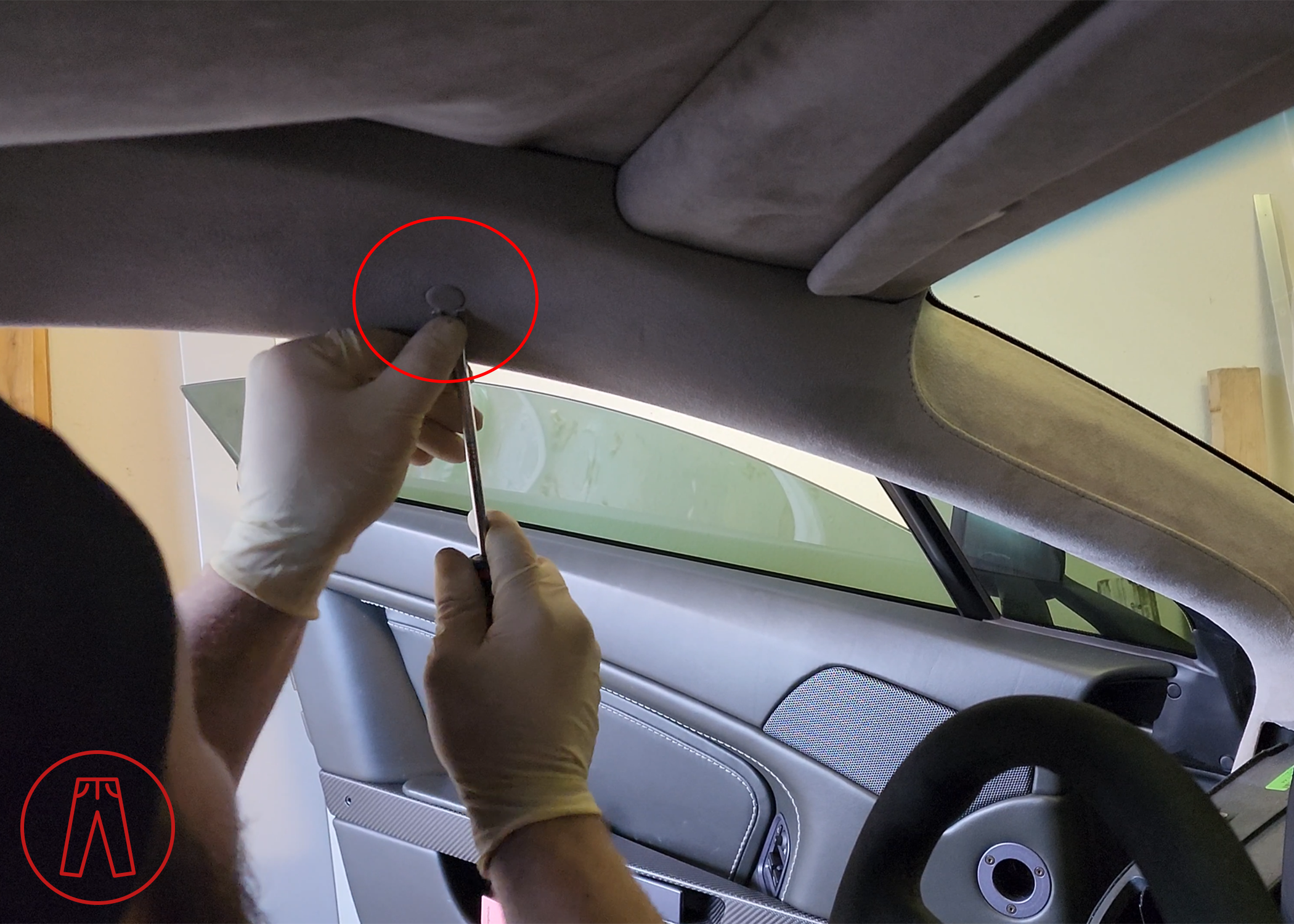 Remove the two Alcantara fir tree clips on the trim panel that runs above the door. There’s one shown in the picture below, and one further back toward the rear of the car.