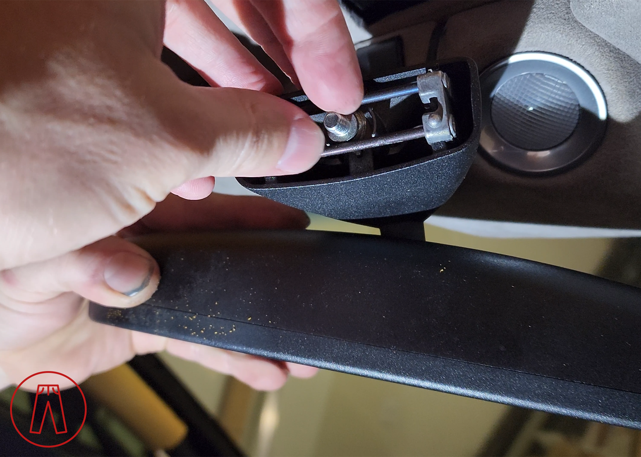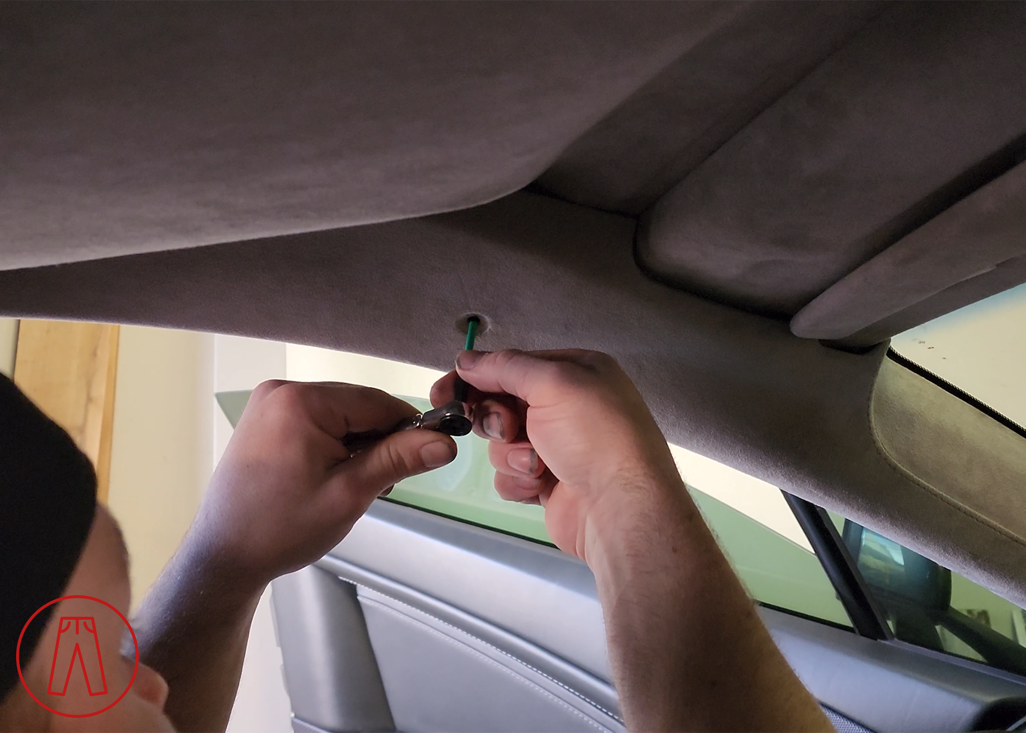 If you’re having trouble clearing it, release the fir tree mounting clip at the rear of the headliner for extra clearance to remove the headliner if needed.