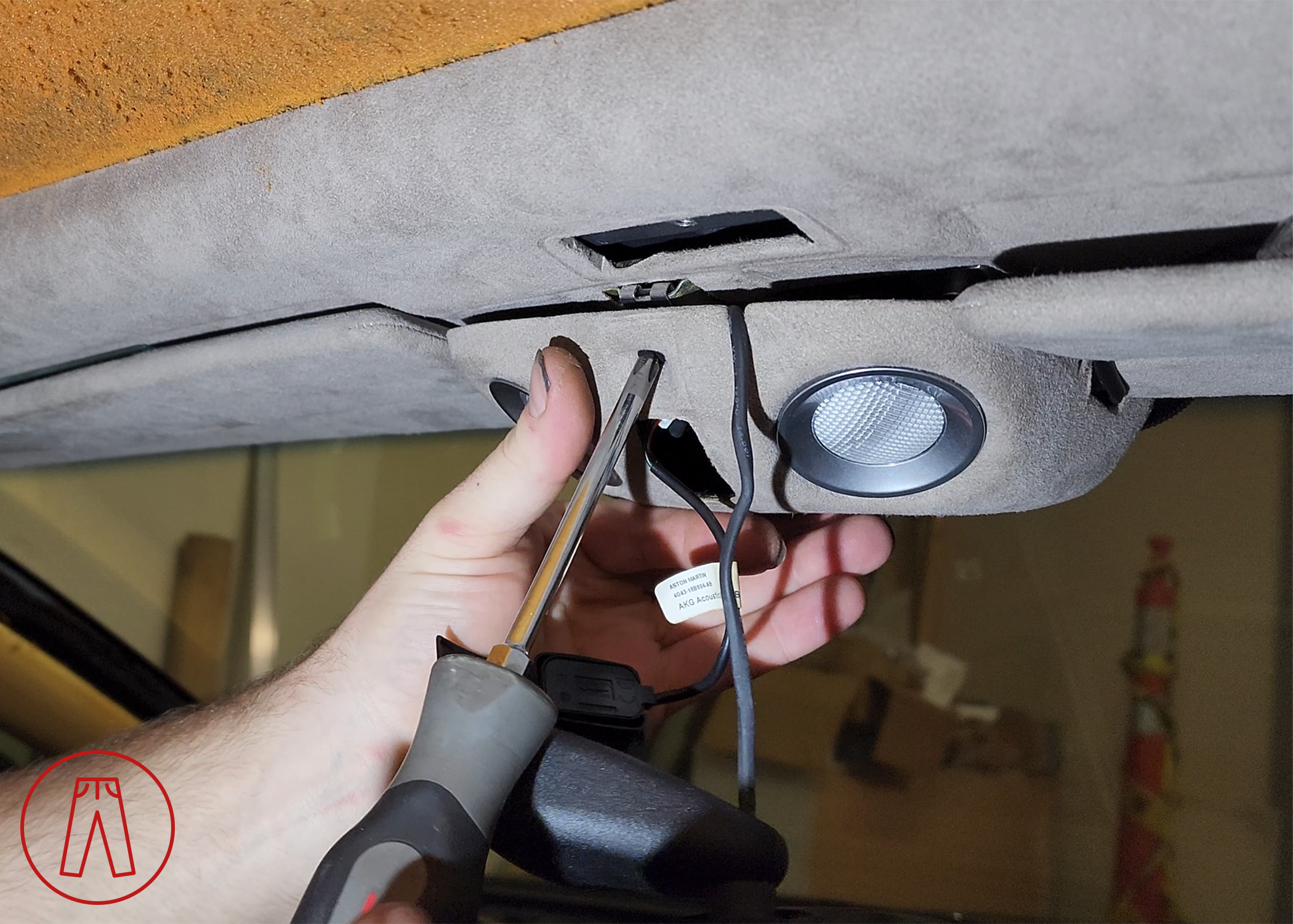 Pull down on the map light housing to remove it, but don’t pull it completely away (the map lights themselves will still be connected).