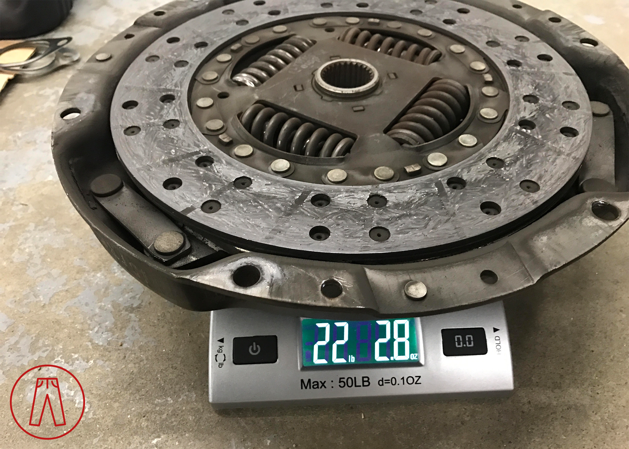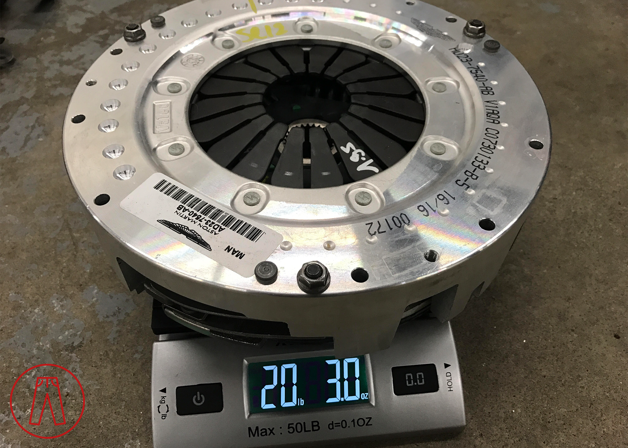 The flywheel is attached to the backside of the engine and spins with the crankshaft of the engine. The clutch is attached to the flywheel and is the coupling that connects (or disconnects) the engine from the rest of the drivetrain. Since they spin on an axis, the further out the weight is located, the more it affects momentum. Here are the weights of the OEM single-plate clutch and flywheel that came on my 2007 V8 Vantage.
