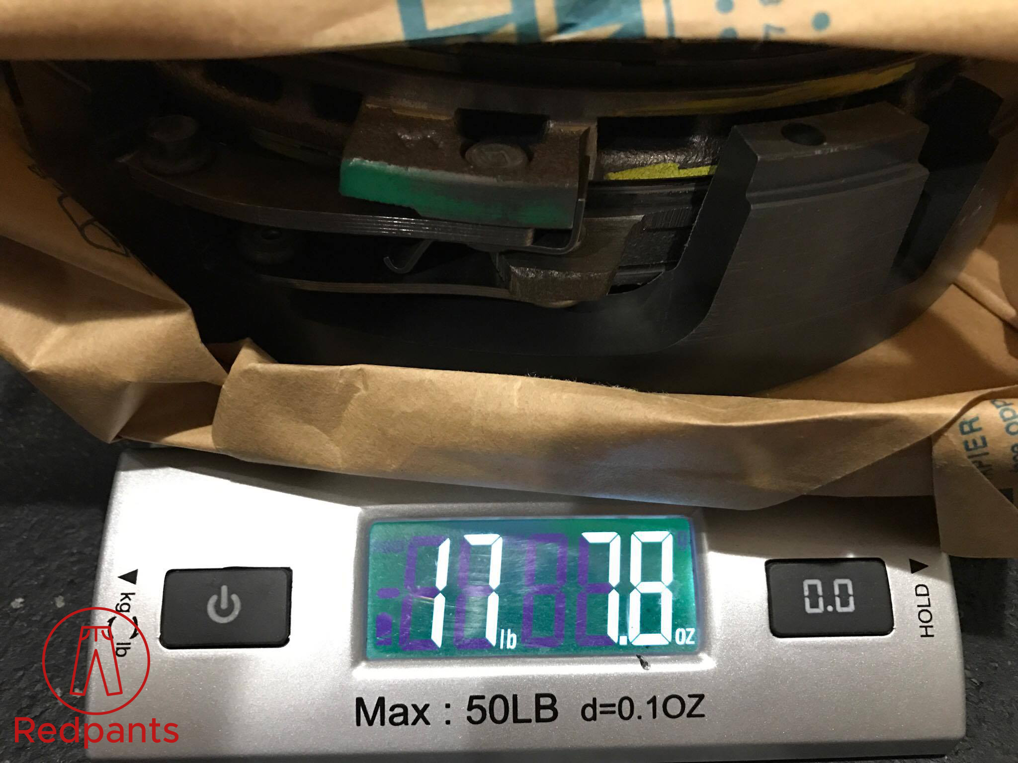 The AMR clutch weighs slightly less than the weight shown due to the paper packaging that is still on it. The actual weight is likely only an ounce or so lighter than shown, but it’s worth mentioning for consistency’s sake.