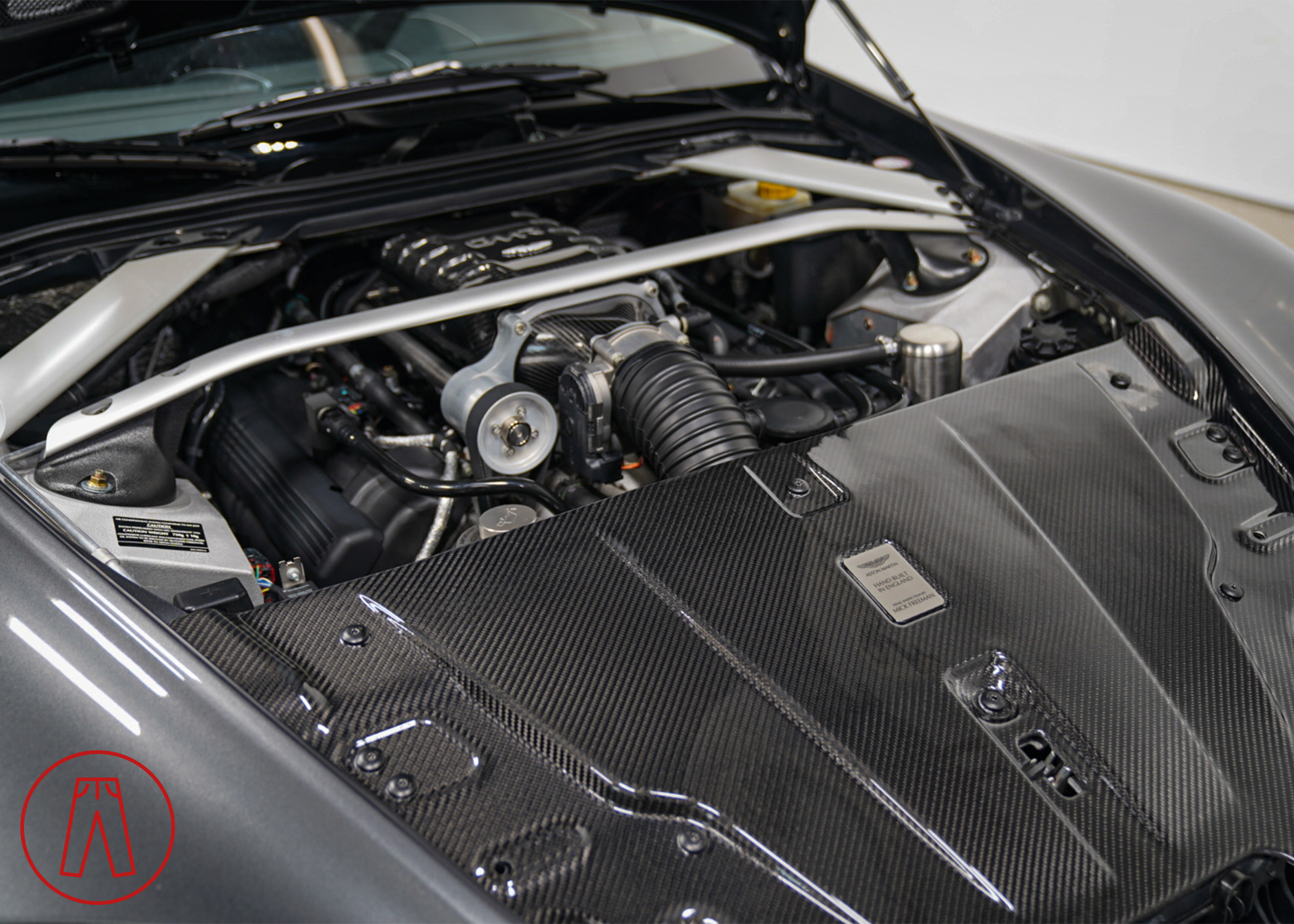 These tail lights first debuted on the limited-edition V8 Vantage N400 and suited his car perfectly. To make sure he didn’t taint the silvers and greys with color, Jay opted for the Bright Clear finish when he ordered his BC Forged RS43 wheels. Bright Clear shows the brushed texture of the wheels’ forged aluminum but protects it from the elements with a clear coating. The wheels are spec’d with 19” Widepants fitment to allow a super-meaty set of Michelin Pilot Sport 4S tires to be used. They’re sized 265/35 in front and 305/30 in rear, which provides enough traction to put the supercharger’s power to the ground.
